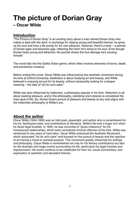 Download Lesson Plans The Picture of Dorian Gray Reader Gutenberg
